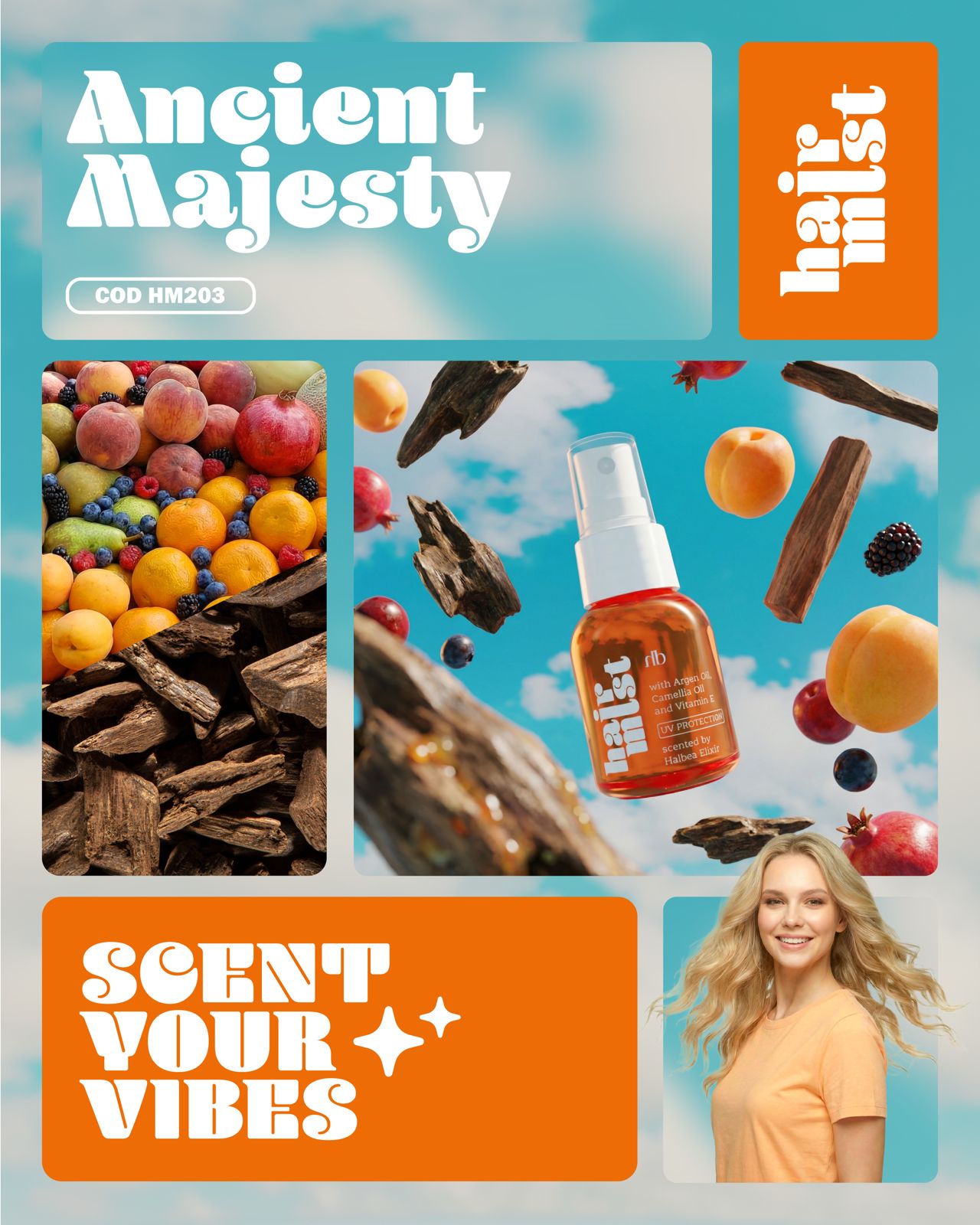 Das Halbea Hair Mist Ancient Majesty 203 ist ein luxuriöses Haarparfum, das das Haar in eine opulente, orientalisch-holzige Duftspur hüllt und Stärke, Tiefe und Präsenz ausstrahlt.
